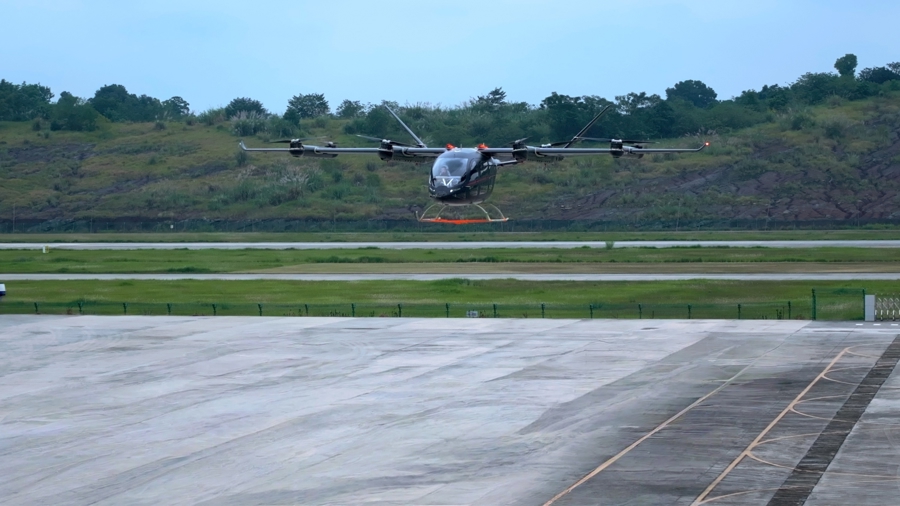 9月底,AC101在遵循民用航空器严苛标准开展无保护飞行任务前,完成了旋翼阶段所有无人试飞科目,包括模拟飞控失效、电机故障、应急着陆等多项高风险试验,充分验证了结构强度、动力系统稳定性、飞行控制精度等关键指标,尤其在极端工况下的安全可控性满足设计预期,顺利获得民航局颁发的临时国籍登记证、特许飞行证和无线电台执照,成为国内首个集齐有人驾驶飞行所需全部资质的商用客运eVTOL机型。后又经由一系列的严苛评审,专家组于10月10日完成了飞机技术状态评审和放飞评审,保证了本轮首飞符合相应工作程序。